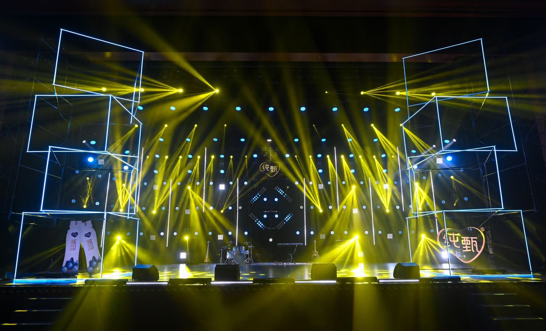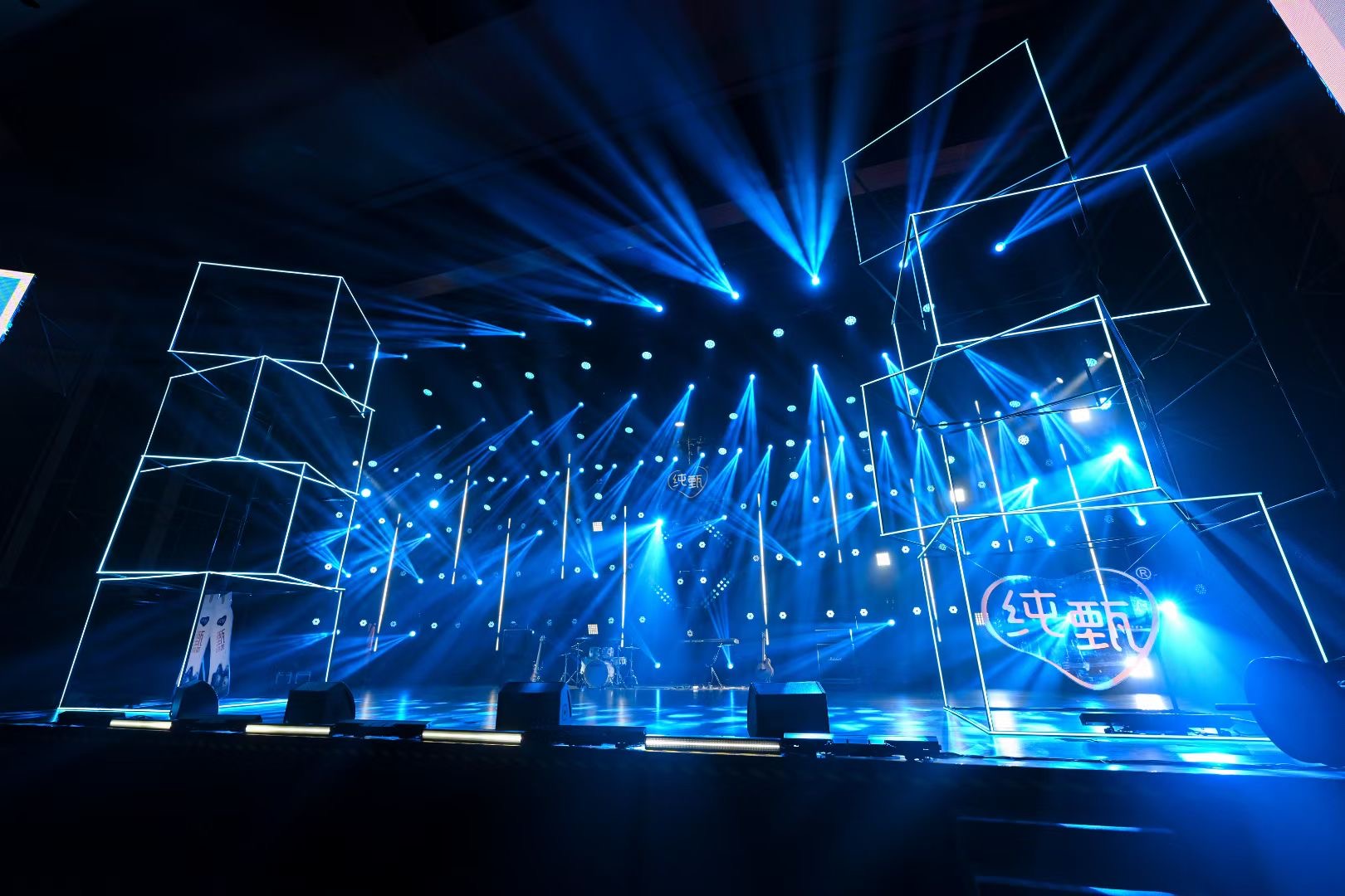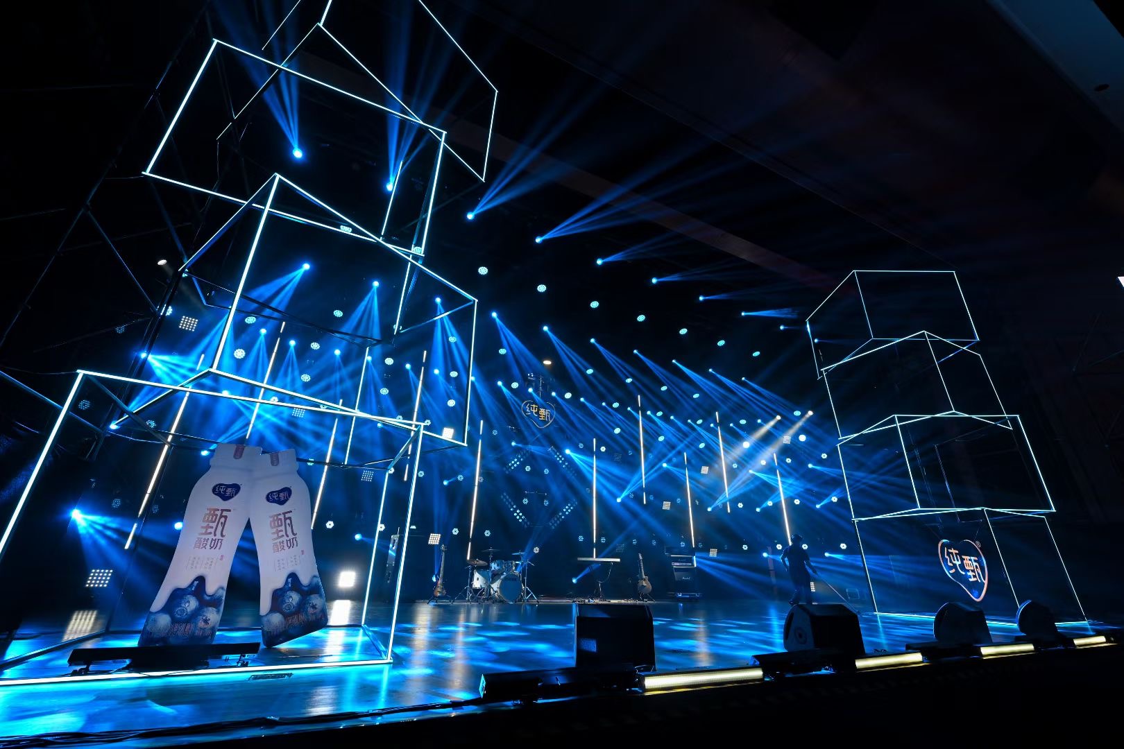 進入見(jiàn)面會(huì)場(chǎng)地(dì)內(nèi),燈光(guāng)絢爛而流緩, 舞(wǔ)台上(shàng)放(fàng)著(zhe)架子(zǐ)鼓等樂(yuè)器(qì),讓人(rén)期待接下(xià)來(lái)的(de)演出。