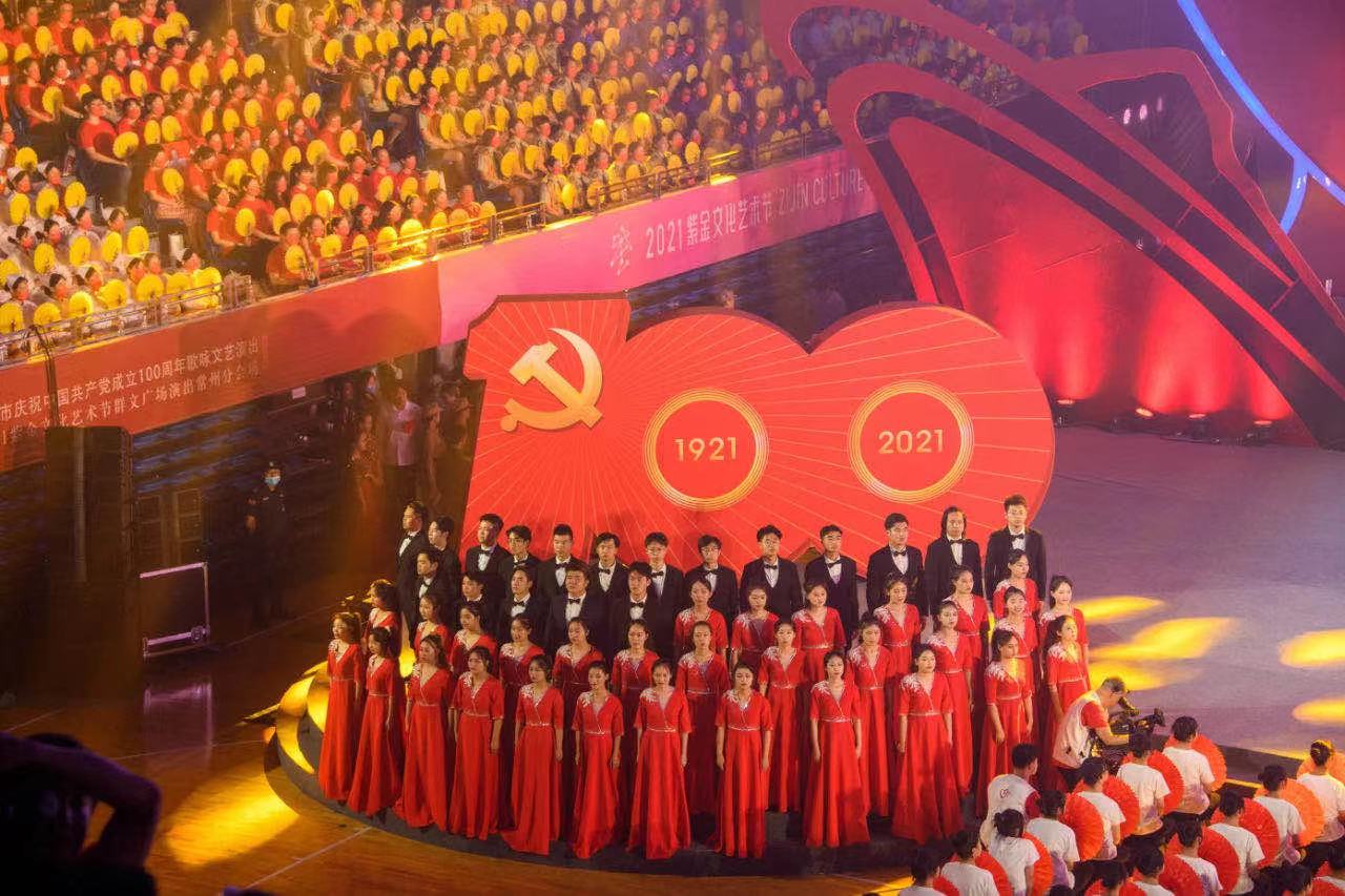 2021年(nián)6月(yuè)30日(rì)14:00 ,百年(nián)築夢 壯麗(lì)航程——常州市(shì)慶祝中國(guó)共産黨成立100周年(nián)歌(gē)詠文(wén)藝演出暨2021紫金(jīn)文(wén)化(huà)藝術(shù)節群文(wén)廣場(chǎng)演出常州分(fēn)會(huì)場(chǎng)←,在常州奧體(tǐ)中心精彩呈現(xiàn)。本次活動由我公司承擔舞(wǔ)美(měi)制(zhì)作(zuò)并取得(de)圓滿成功。